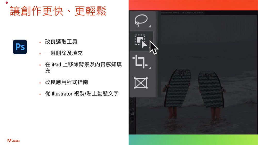 一年一度的 Adobe MAX 創意大會於 10/18 揭開序幕,會中 Adobe 宣布為兩款受到創作者、消費者廣為愛用的產品 Photoshop 與 Lightroom 導入更先進的 AI 功能,不只能夠加快創作時的速度與效率,還可以用更便捷的方式與團隊成員一起協作。