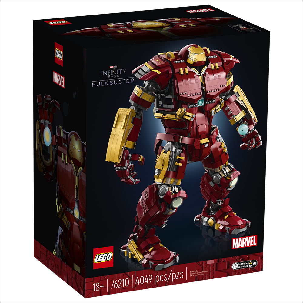 樂高 LEGO 在 2018 年推出「The Hulkbuster: Ultron Edition」這款設計參考《復仇者聯盟2:奧創紀元》電影版本的樂高積木模型,身高 25 公分、採用大量零件與可動關節。而在四年後的現在,樂高 LEGO 與 Marvel 合作帶來全新更大、更精緻的「浩克毀滅者(76210)」積木模型。