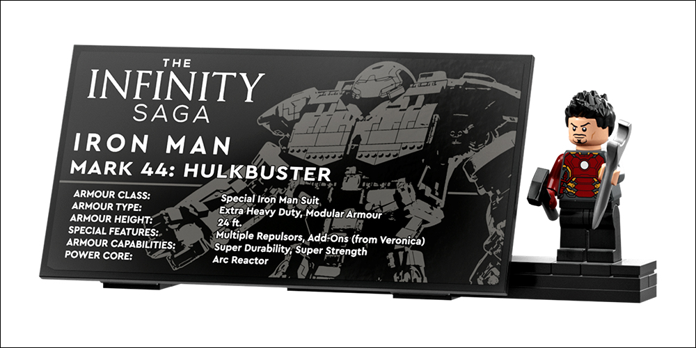 [caption id="attachment_465272" align="alignnone" width="1000"]另外,浩克毀滅者(76210)套組隨附專屬銘牌以與 Tony Stark 的小人偶,讓玩家可以將它擺在巨大的浩克毀滅者旁邊呈現更好的展示效果。