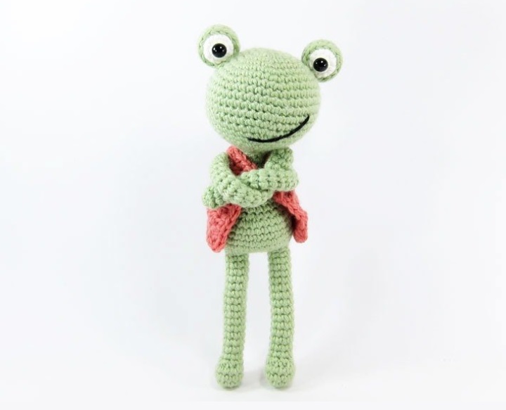 這款青蛙擺飾的青蛙穿著小背心,開心的表情看起來相當可愛。青蛙擺飾本身採用壓克力毛線/羊毛、塑料、填充棉花一針一線的鉤織而成,也因為是手工製作成的擺飾,也可以跟店家討論客製化的部分,讓每一個青蛙擺飾都獨一無二。