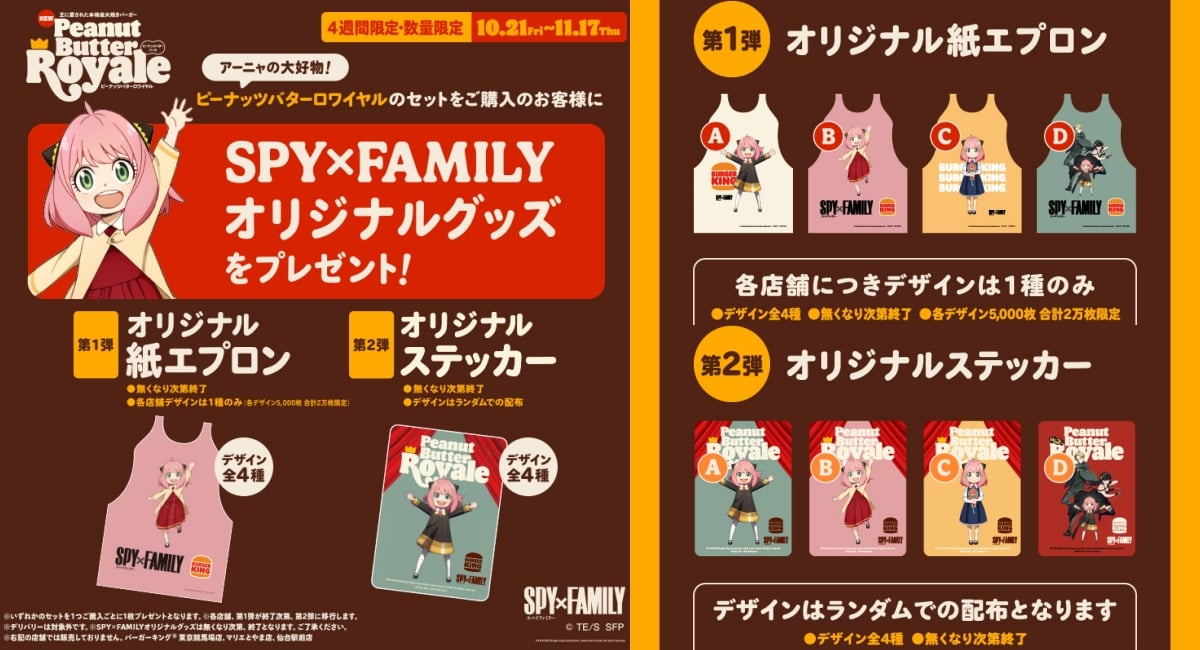 日本漢堡王近期與超人氣動漫《間諜家家酒》聯名,不僅推出結合了安妮亞最愛的花生「Peanut Butter Royale」系列漢堡,今日(10/21)更公開了唯一的「期間限定店」正式空降東京澀谷!實在太羨慕日本的間諜粉們了~
