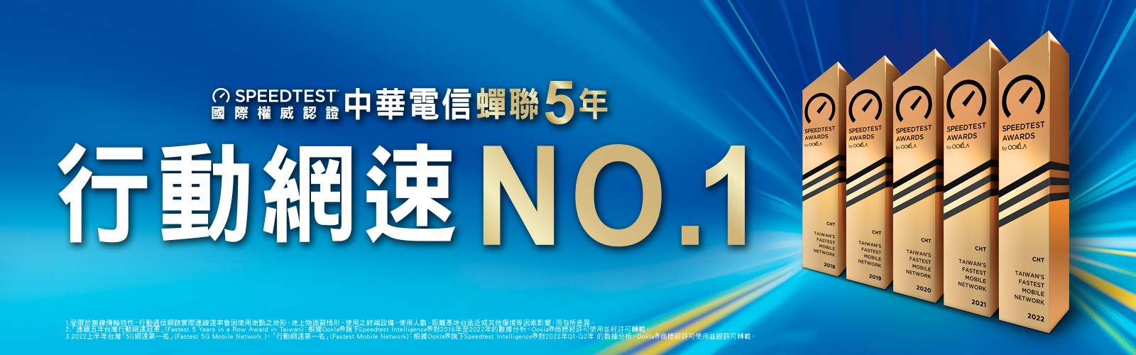 還有還有,中華電信擁有最大的5G頻寬,根據國際權威測速Speedtest 公布 中華電信連續五年行動網速No.1再度蟬聯台灣「5G網速」、「行動網速」雙料冠軍,讓用戶可以在每個24GB的額度內享受最高速上網體驗,拚網速總是高人一等!