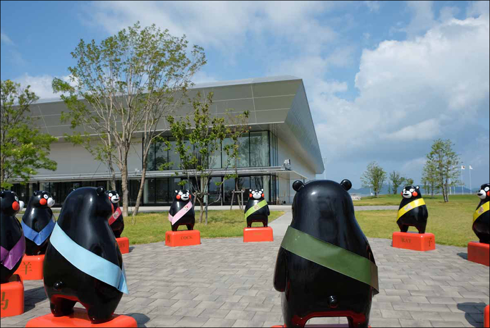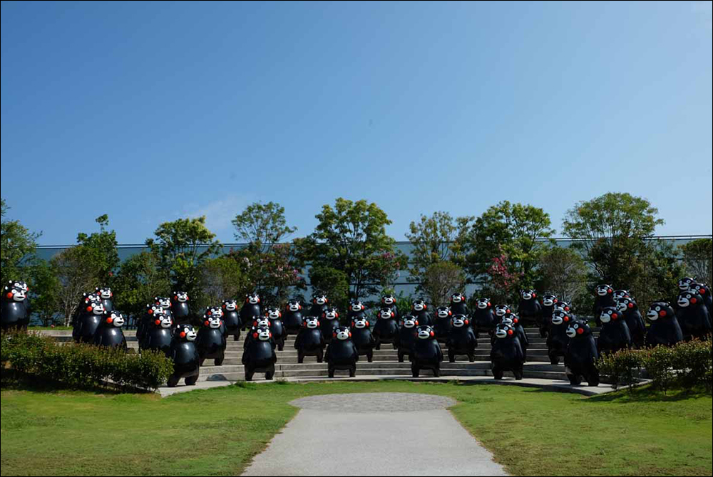 [caption id="attachment_466409" align="alignnone" width="1000"]當然如果要能看到最大的熊本熊,就一定要到「熊本熊港八代」囉!於 2020 年 3 月完工的熊本熊港八代裡 ,也有本熊為主題的公園。這裡設置了全長 6 公尺的超巨大熊本熊和陳列了 54 尊熊本熊的合唱團等,在這可以見到許多熊本熊。
