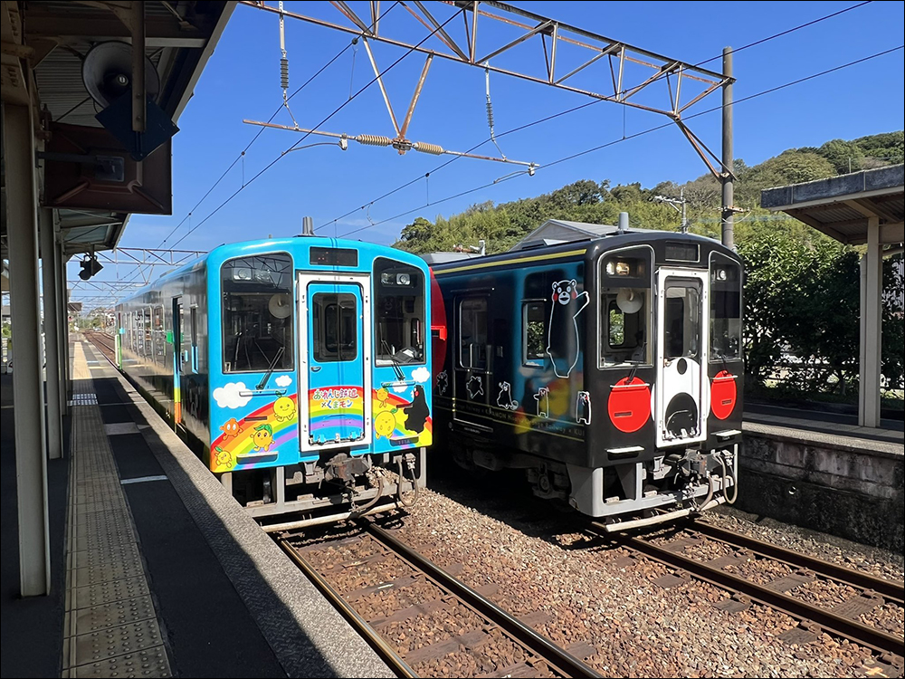 [caption id="attachment_466396" align="alignnone" width="1000"]電車也都是滿滿的熊本熊塗裝,基本上要不看到熊本熊幾乎不可能。