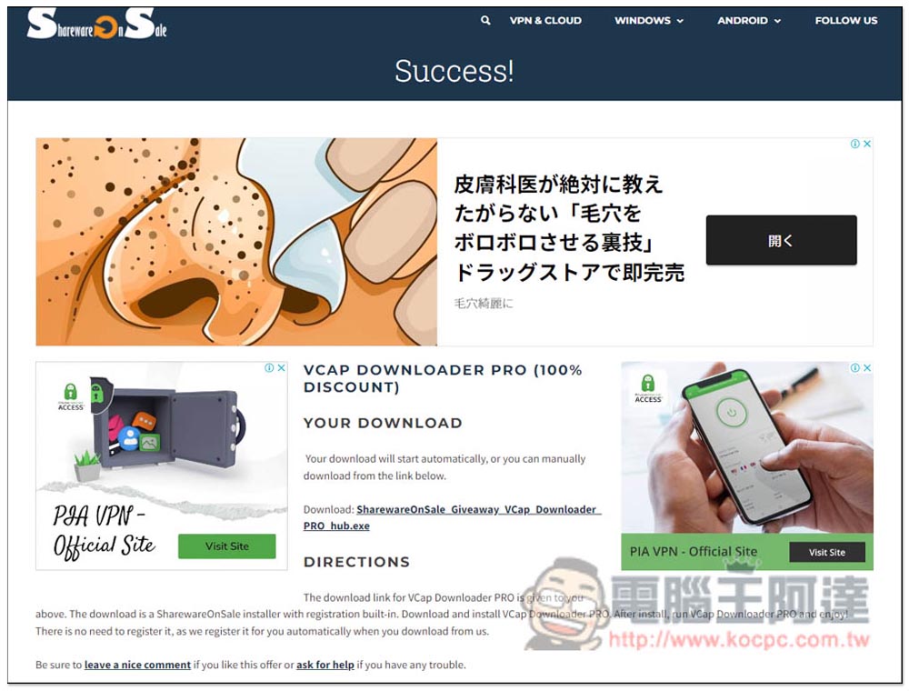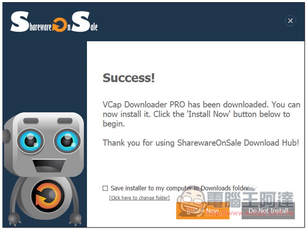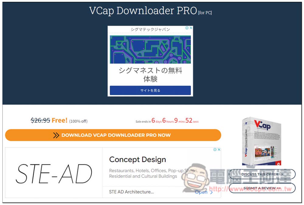 這次推出 VCap Downloader PRO 限免活動的是 Sharewareonsale 網站,進到活動頁面後,點擊 DOWNLOAD VCAP DOWNLOADER PRO NOW,目前還有 6 天 6 小時左右的時間: