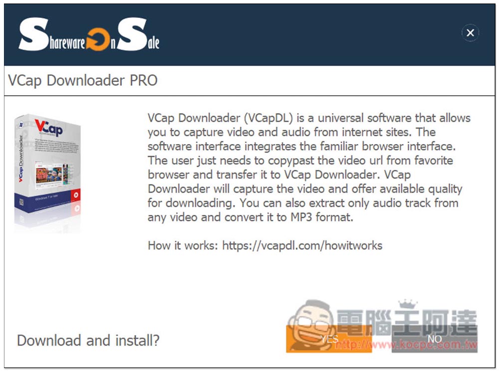 然後按 YES 就會正式開始下載 VCap Downloader Pro 的安裝檔: