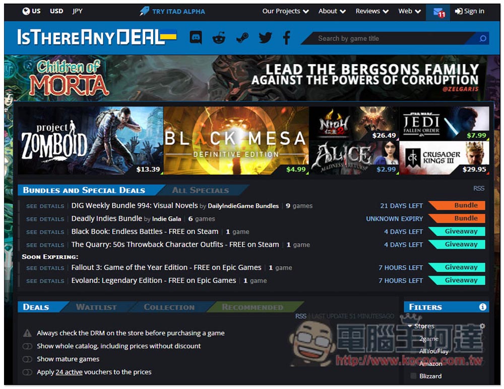 跟 SteamDB 不一樣的地方在,IsTHEREANYDEEAL 網站收集很多遊戲平台的價格資訊,不只是 Steam,如:Humble Store、Microsft Store、GamesPlanet、GreenManGaming 等等都有,代表說如果你是一位會在多個平台購買遊戲的玩家,那 IsTHEREANYDEEAL 會更適合你。