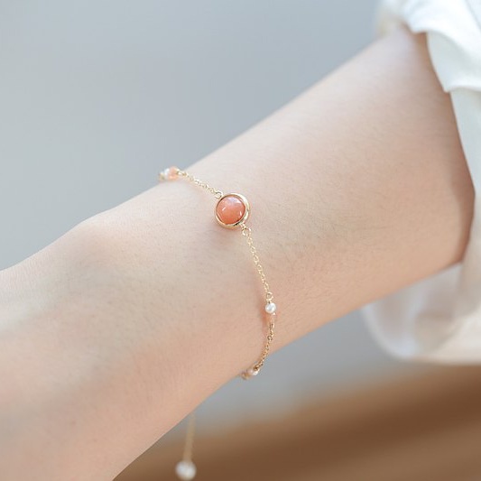 Jie Jie Jewelry 推出的這款手鍊沒有過於繁複的設計,而是嚴選 5A 等級的太陽石作為整條手鍊的視覺重點,溫暖的橘紅色澤讓人一看便擁有好心情。點綴其間的天然珍珠優雅而不搶風采。此外,手錬尾端貼心加上了調節珠,各位可依照自身手圍進行鬆緊度的調整。