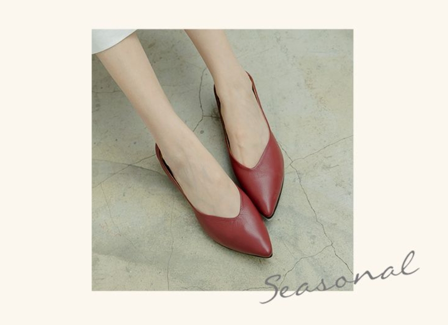 復古紅配色鞋款推薦6.Ann'S 純色V口尖頭真皮平底鞋