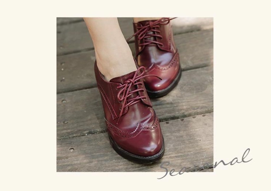 復古紅配色鞋款推薦5.Ann'S 綁帶牛津雕花粗跟踝靴
