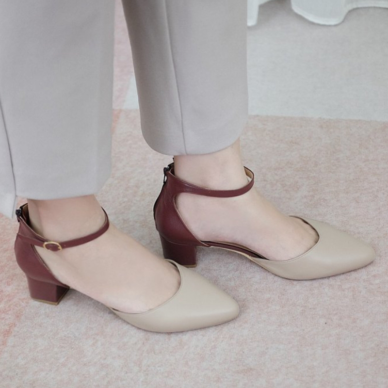 這款尖頭跟鞋採後拉鍊的設計,穿脫鞋子更方便。前後不同的色塊,是一雙個性感十足的鞋款。勃根地酒紅色讓這雙鞋更增添古典美,奶茶色尖鞋頭展現出小女人的優雅。工作、聚會穿都適合,可端莊也可以很溫柔。就穿上獨特的跟鞋,展現出自己的時尚魅力吧!