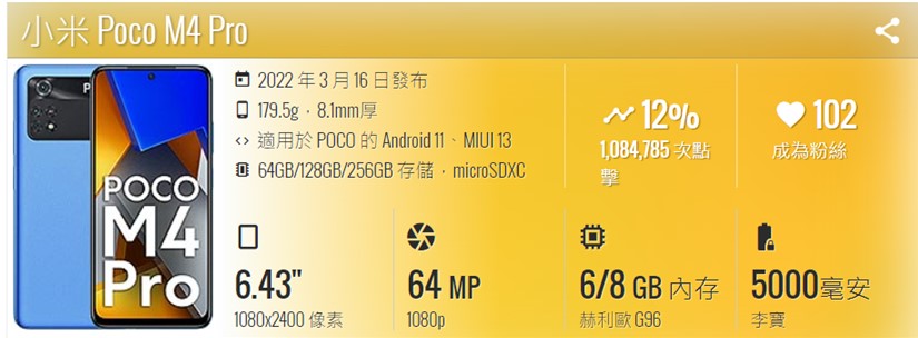 POCO M4 Pro 4G 建議售價$5990,推薦的理由是其螢幕亮度更高達1000尼特(nits),方便可以在大太陽底下看清楚手機螢幕畫面,適合跑中午下午班次的機車外送族。