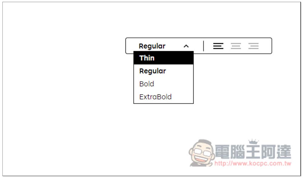 右下角可切換其他字體,日文部分共有四種,Thin、Regular、Bold 與 ExtraBold: