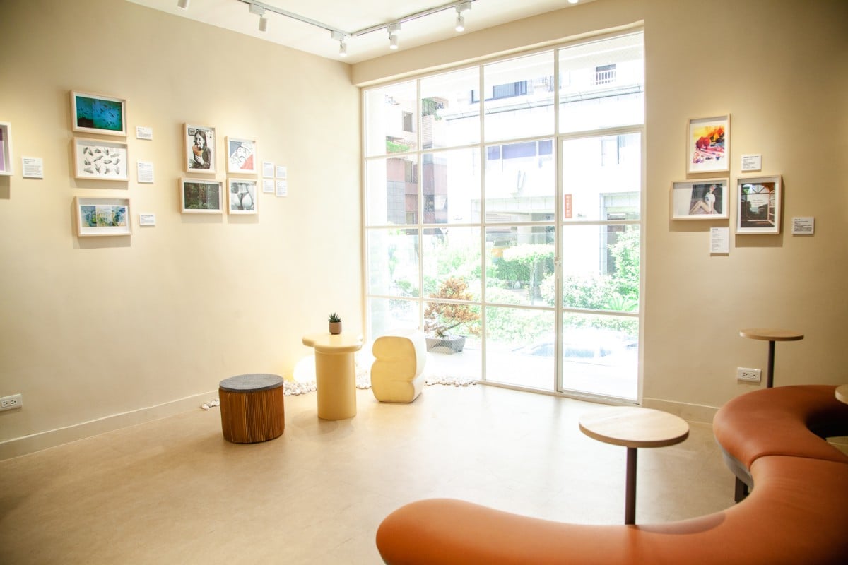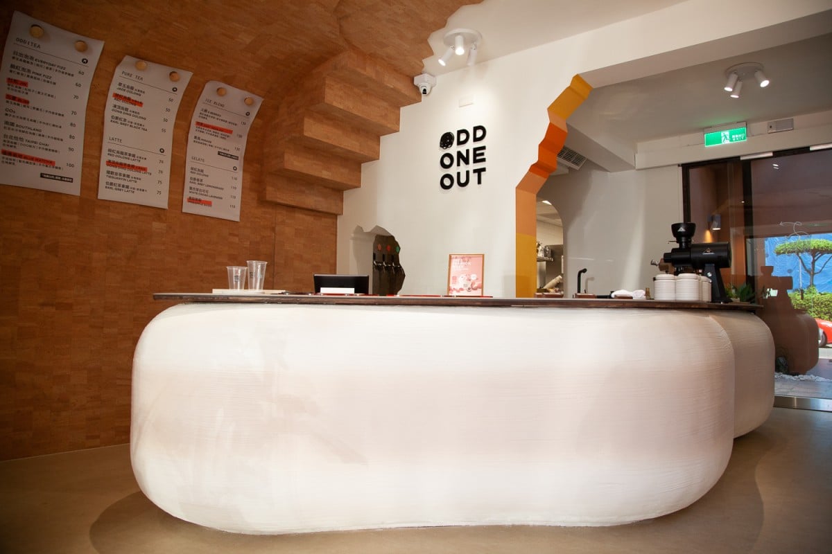 「ODD ONE OUT」有著難得的前庭、後院及小徑,每一處都好拍到不行!一走進店裡便會看到線形長吧台,吧台上方以大面積的軟木塞牆面拼接,手撕鋸齒狀更是代表著揮別舊框架與重建非典型茶飲的痕跡。故意做出不規則洞口、吧台和牆面,就是因為對OOO來說「沒有所謂完美」,品牌欣賞以及擁抱每一份獨特,而二樓的展覽間主題更是「怪奇聚落」,妞妞們拿著好喝飲料的同時,也能走上樓看看畫、拍拍照喔。
