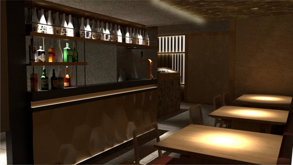 「日本橋海鮮丼辻半TSUJIHAN-Sogo復興店」總坪數20坪,共有22席(板前客席10席、客桌席12席),延續京都建築美學設計大師「安原三郎」的理念,以「真(用餐行為)、行(光線流動)、草(玄武岩和原木素材)」日式美學概念打造形成平衡,宛如高檔日本料理店般低調靜謐的空間,用餐環境給人一種雅緻氛圍,特別是這次還新增「日本調酒吧」和「生蠔吧」雙獨家設計!