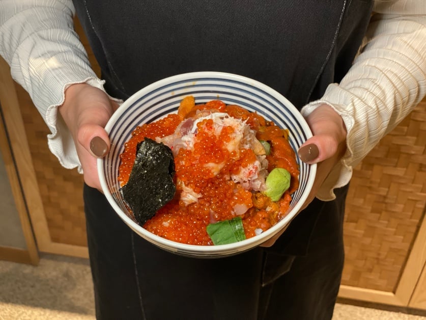 跟微風信義店一樣有提供「海鮮珠寶盒」和「職人海鮮丼」,其中最經典的海鮮珠寶盒有特上、松、竹、梅、雪、輝和旬等套餐,不論是喜歡蟹肉、海膽、紅蝦,還是鮪魚、鯡魚卵,絕對會有一款對你的胃和味蕾,另外也推薦大家他們家獨特的「留」、「拌」、「鋪」、「淋」、「湯」、「鮮」吃法6字訣,最後一定要加頂級真鯛高湯,暖心又暖胃!