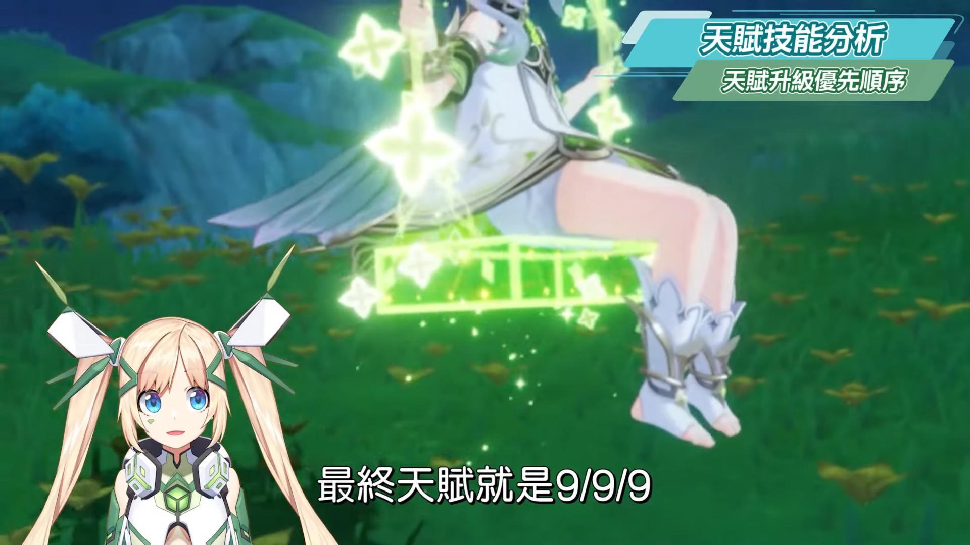 天賦升級優先順序方面,E技能是核心天賦優先點高,其次則是Q大招,最後則是看你的納西妲會不會需要站場,假如都是偏後台輔助使用為主,A就可以不用點,而若是會需要站場的話,最終天賦就是9/9/9。