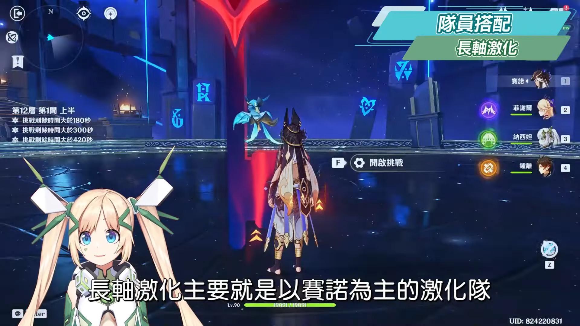 長軸激化主要就是以賽諾為主的激化隊,可以參考先前的賽諾影片中的隊伍配置,將草主的部分轉為納西妲,納西妲的E技能可以提供25秒的掛草時長,給長軸的賽諾打滿開大後的18秒綽綽有餘。