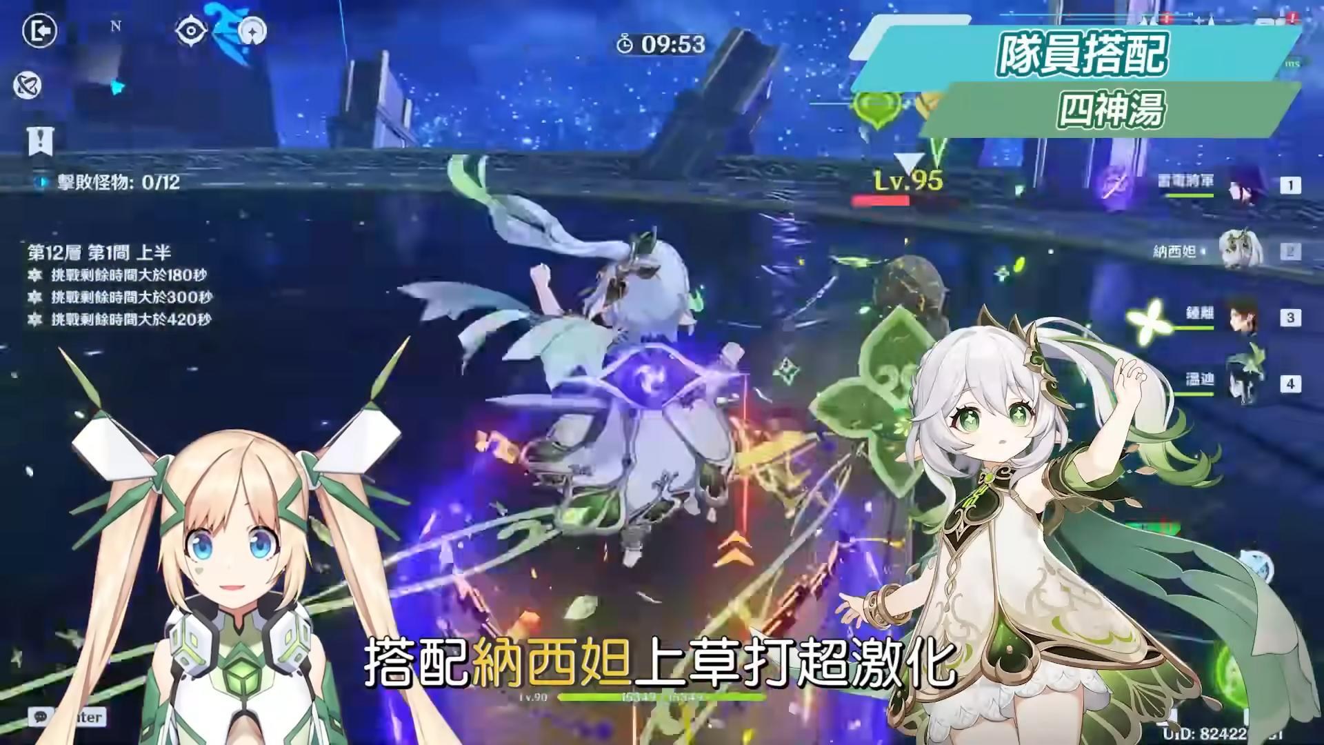 超綻放隊可以讓納西妲擔任後台掛草角色,再搭配行秋或夜蘭的後台掛水角色,以及後台掛雷兼任奶媽的久岐忍,站場角色可以選擇的有很多,像是綾人、鹿野院平藏、砂糖、心海等,納西妲也可看情況轉為站場,而打超綻放的久岐忍要注意元素精通和角色等級要越高越好。