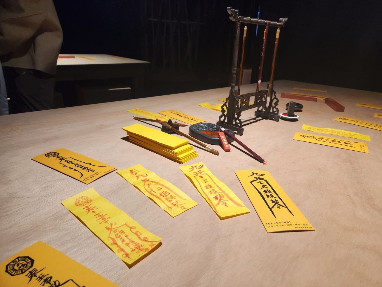 值得一提的為展示品中的「法師入門、進階之陞職證照」,又名上奏天庭的「奏職疏文」!因道教一切的典章制度均沿襲上古封禪郊祀定制,所以不是任何人都能直接使用法器處理「殭屍」,須經過上報天庭並獲得同意後,方可使用辰州符、法劍、引魂鑼、攝魂鈴等,以進行作法、招魂、祈福儀式或處理各式狀況。