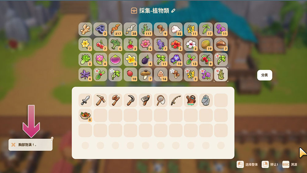 由於還在開發階段,遇到遊戲不穩定、Bug 多、翻譯不完整都是非常常見的情況,地圖卡點或是遊戲當機等都可能出現,所以你必須多多擔待。像筆者最近在玩的這個《珊瑚島》就常常出現用 Google 翻譯來機翻的內容,下面這張圖片是想要把東西放進已滿的儲物箱,不知為何被翻成「胸部飽滿」(應該是儲物箱已滿),相當奇葩。
