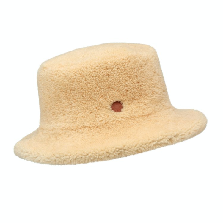 每年秋冬之際,毛茸茸的單品就成為女孩最暖心的首選,這頂剪羊毛面料的漁夫帽,用溫暖的奶茶色為基底,簡單放上一個小小的圓形皮標,極度柔軟的觸感加上不過於張揚的設計,讓整頂帽子沒有流行性的限制,明年冬天戴也一樣時髦。(商品售價:NTD50,500)