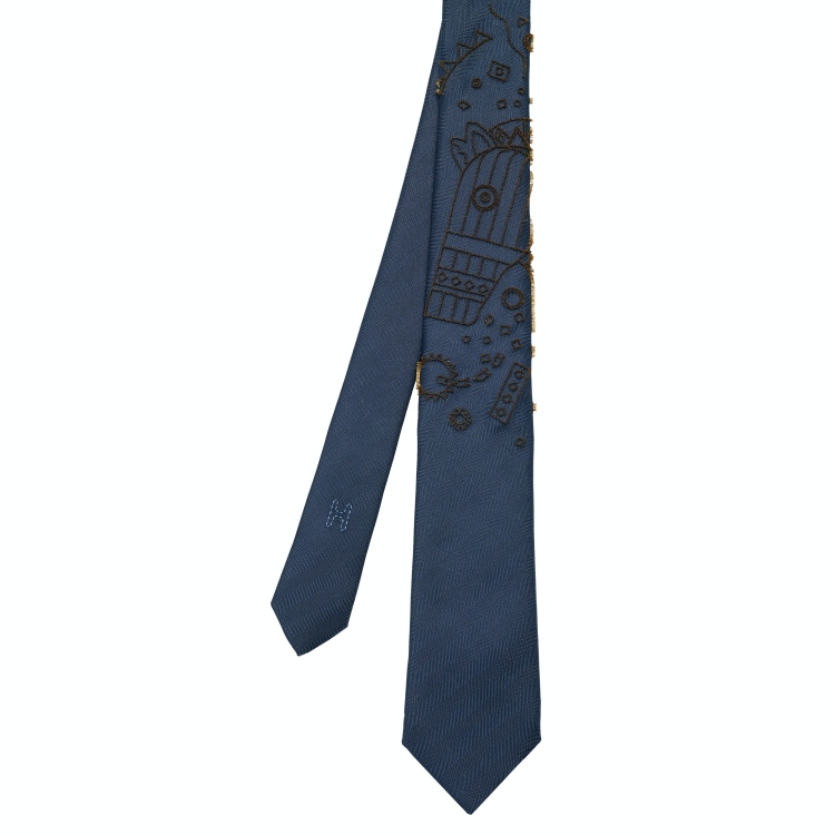 領帶很容易能鑑別出一個人品味的好壞,這條簇絨真絲領帶運用代表品牌馬具起家的馬圖案為主要設計,搭配可愛逗趣的細節點綴,讓整體在沈穩中又不失年輕感。(商品售價:NTD12,300)