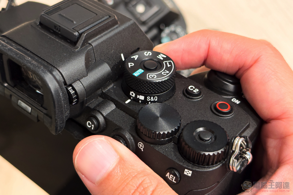 手感部分,A7R5 的機身也有變得更厚實些 - 握起來覺得更穩。轉盤方面則是把錄影、靜態拍攝與 S&Q 獨立出來放在了模式轉盤底部供快速調整。並且與前代原本是 EV 值轉盤的快速功能轉盤同樣具備有避免誤觸的鎖定機制。原本的 C1 按鈕則是改為了醒目的紅色錄影按鈕 - 其實是跟 A7R4 觀景窗旁邊的 C1 按鈕對調位置。