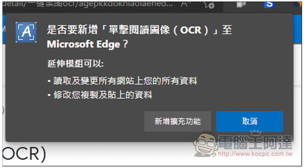 「單擊閱讀圖像」是 Chrome 瀏覽器的擴充功能,Microsoft Edge 也能安裝,下面我會以 Edge 為示範,操作方式都一樣。
