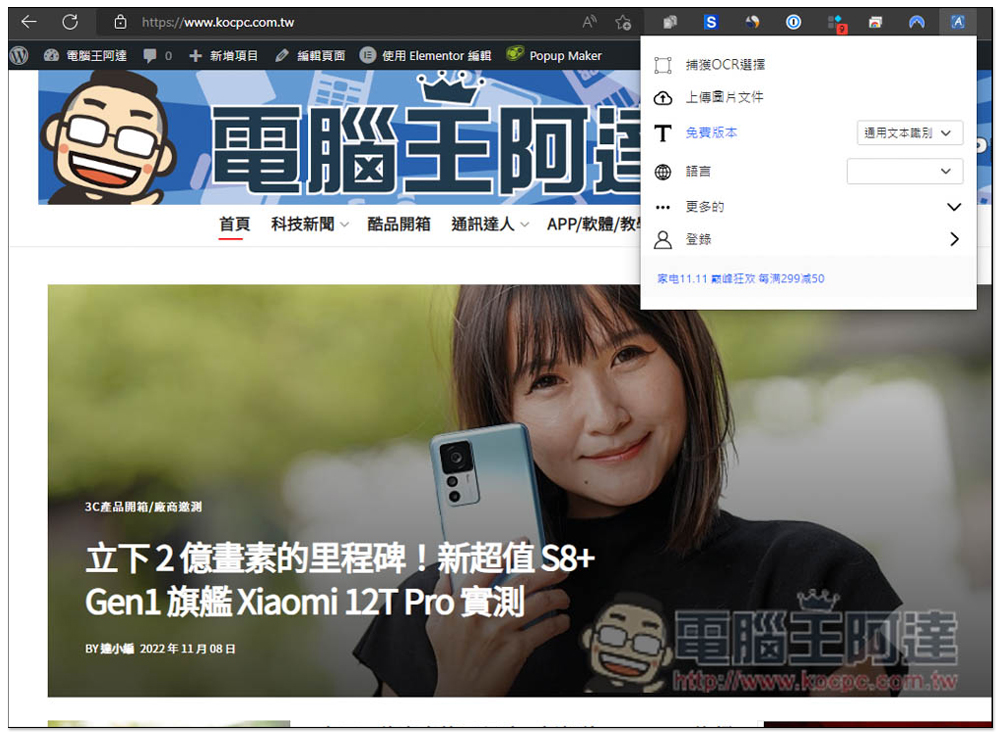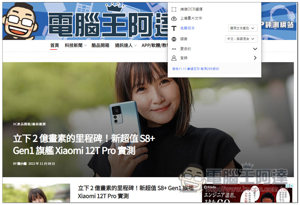 現在網路上有很多 OCR 免費工具,不過都需要手動上傳圖片,操作上多少有些麻煩,而這篇就要推薦一個非常方便的「單擊閱讀圖像」擴充功能,只需要選取你想要 OCR 的圖片內容(當然也支援上傳),它就會立刻提取選取範圍中的文字,支援多國語系,中英文混雜也沒問題,辨識率也很不錯。
