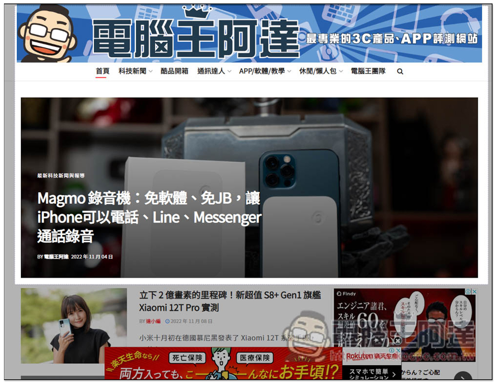 如下圖所示,我就擷取電腦王阿達網站最上方到精選文章: