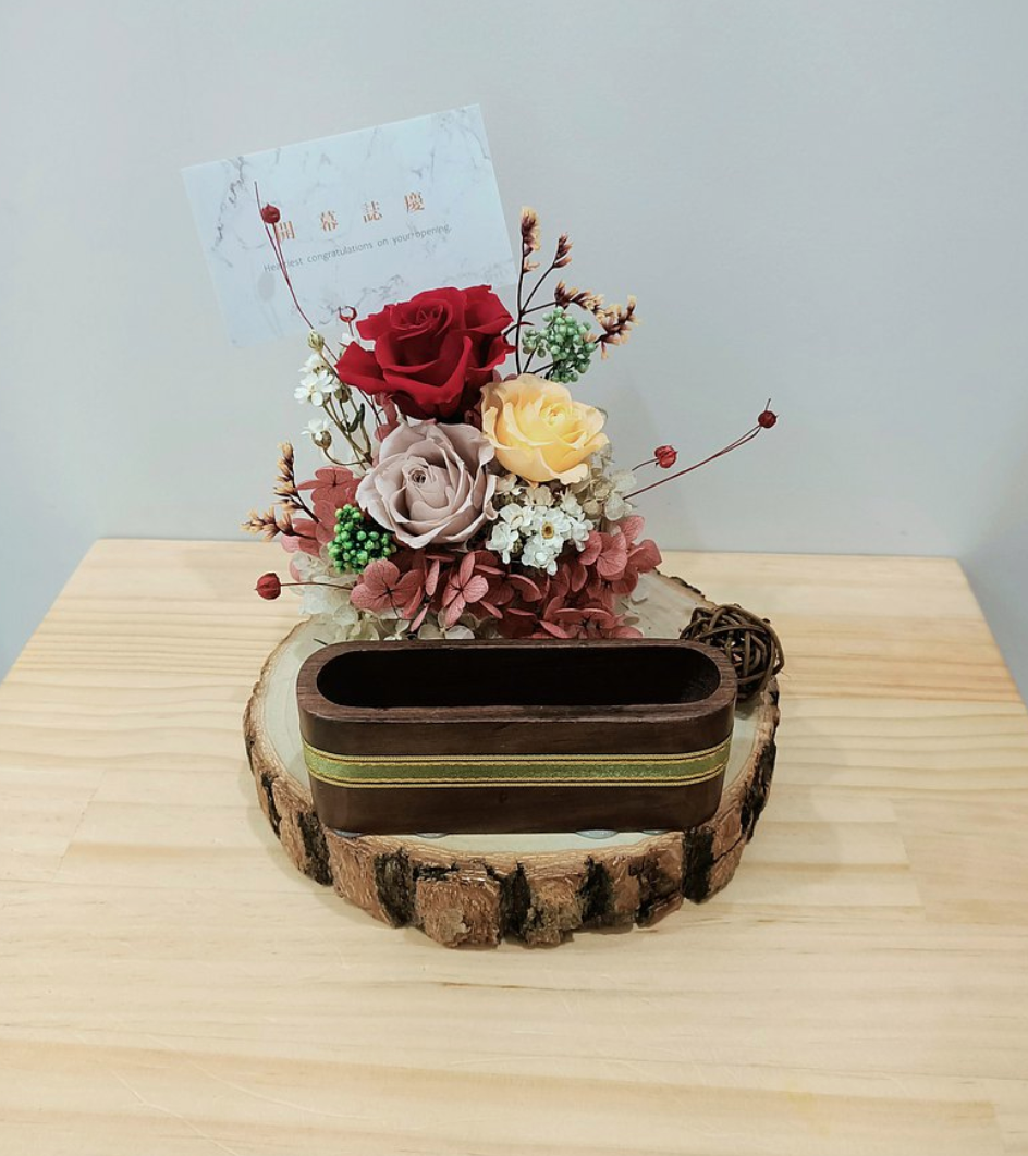 教師節 客製雷刻木片 乾燥花名片座 工商贈禮 企業贈送 花禮