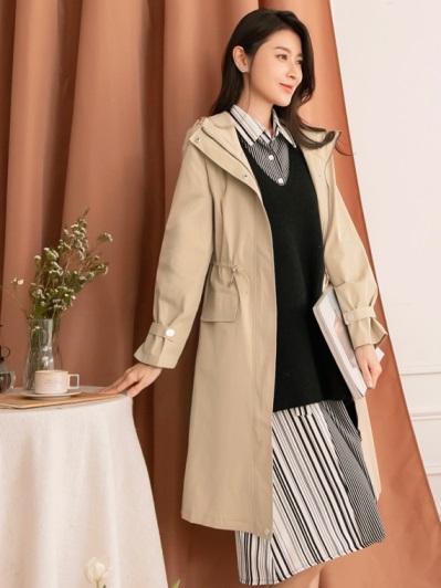 防風外套推薦 1:簡約都會防潑水長版收腰防風外套