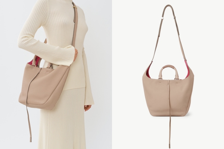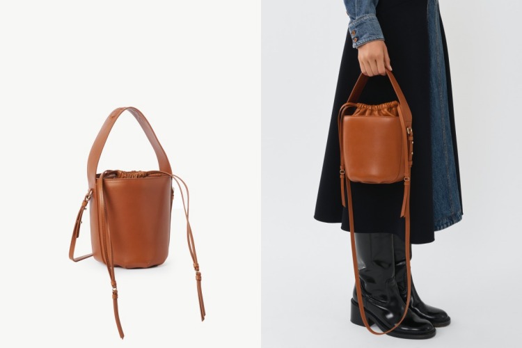 焦糖色的皮革不只雋永又耐看,還能突顯皮質細膩的質地,這款「Sense」皮革水桶包,便運用細緻的皮革為基底,再加上束口的內層包款,以及搭配寬提把的設計,讓包款整體變得時髦可愛。(商品售價:NTD44,200)