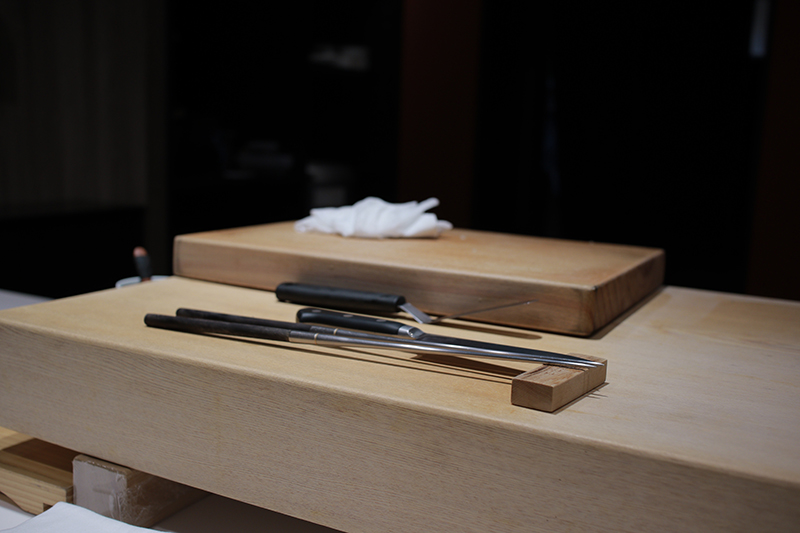 「割烹」是日文かっぽう的音譯,為什麼台灣人這麼著迷割烹料理呢?料理長阿謙說「其實不只台灣,這幾年日本也很流行『割烹』。割烹不只侷限在特定料理上,在這你能吃到壽司、天婦羅,也能吃到烤物、蒸物,是一個很豐富的日本料理形式。」雖然說物以稀為貴,割烹之所以難訂位不單單只是因為座位少,「割烹」其實就跟很多板前料理一樣,師傅很注重與座上賓的交流,透過互動抓住客人的習慣,因此很多師傅都會有一批固定的客人。而在注重食材的運用之餘,交流其實也是板前文化很重注的一個環節。