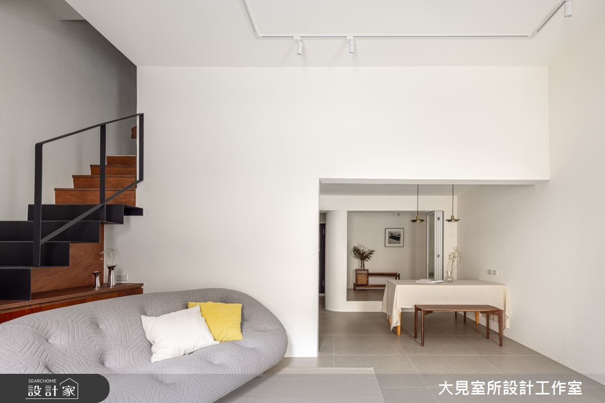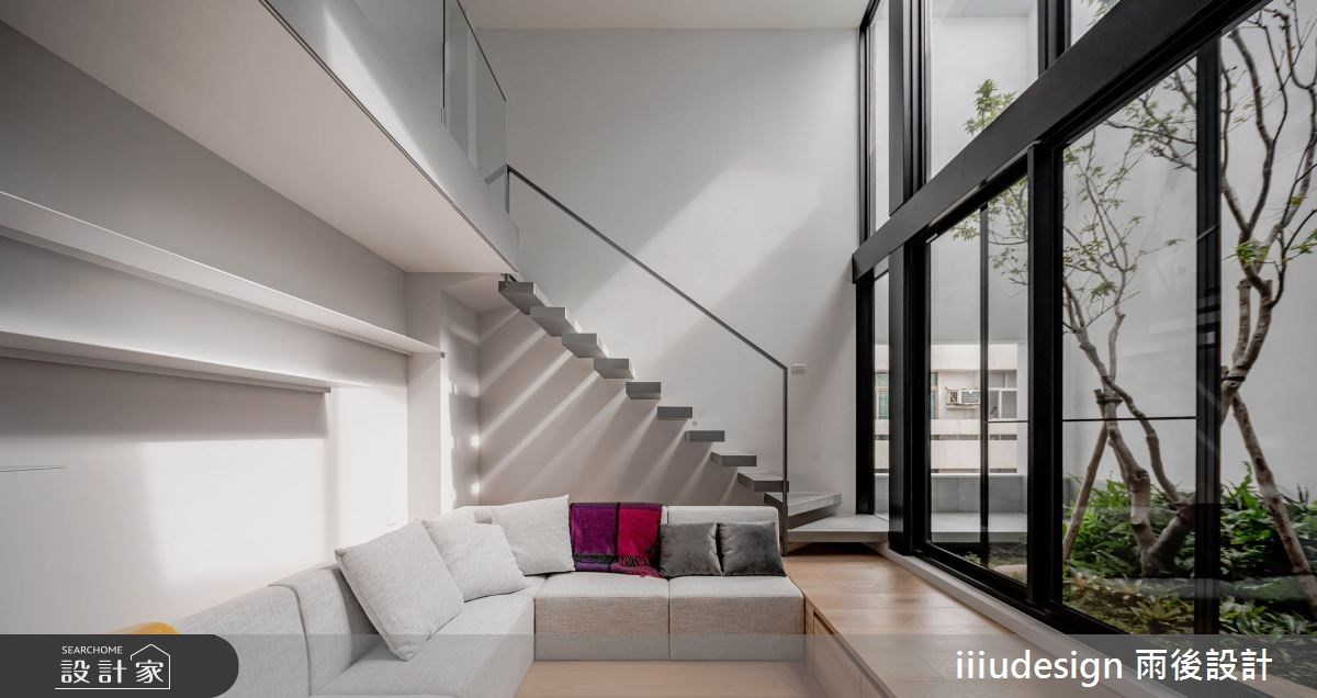 原建築為一般常見的街屋,由於單面採光導致室內光影不足,而原來的樓梯也因高度不一的情況下,造成上下樓不便。翻新後為了改善缺陷,透過天井設計化解陰暗格局,大幅度提升亮度,並打造室內庭院造景,創造有光有景的療癒生活。