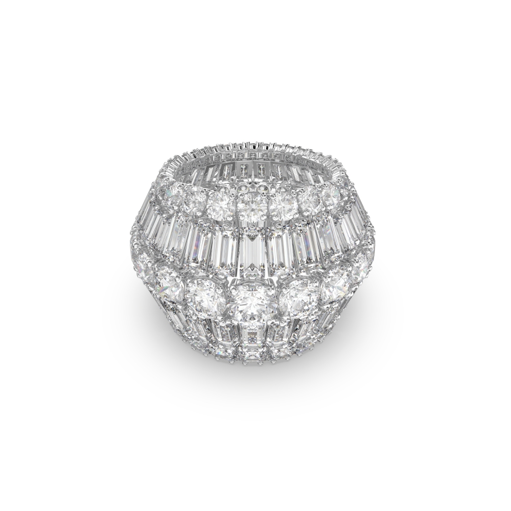 像鑽石閃耀的戒指已經不夠看了,Swarovski 將水晶組合為一個巨大的鑽石形狀,俐落的六邊型造型,讓水晶的切面更具稜角在不同角度下也能閃耀動人,將全場的目光都聚集到你的指間。(官網建議售價:NT$14,000)