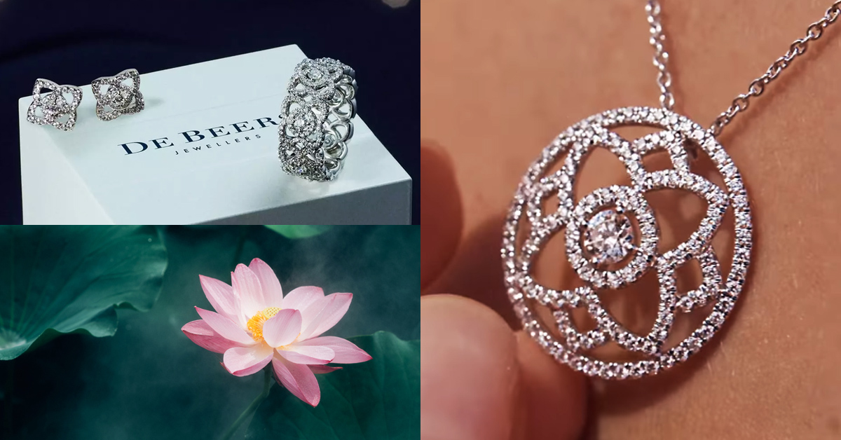 「Enchanted Lotus」系列的設計靈感源自於在陽光下綻放的蓮花,它們於夜晚沉入水中,每天早晨重新浮現。蓮花是一種精神象徵,代表者純潔和永恒的特質。De Beers在飾有天然美鑽的當代珠寶設計中體現了這種獨特的象徵意義,而天然鑽石本身就是永恒的悠久象徵。