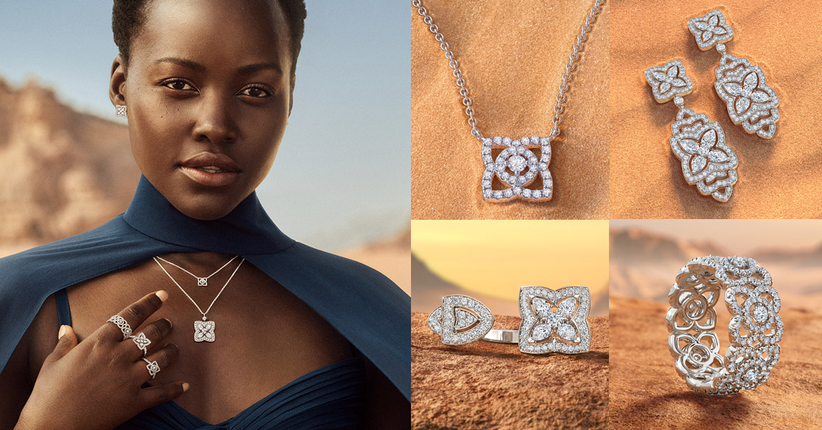甫於今年10月份推出的全新形象廣告中,De Beers邀請全球大使Lupita Nyong'o(露琵塔尼詠)配戴本次3款全新系列之作,包含一條優雅的吊墜項鍊、一只戒指和一對耳釘,均採用精緻的18K白金打造,並鑲嵌圓形明亮式和梨形鑽石,以具象化的圖案,詮釋盛放蓮花的優雅美態;於經典款式中添加了更多現代感設計元素,進一步擴展「Enchanted Lotus」全系列珠寶。三款新品繼10月份於形象廣告中率先曝光後,其中的「Enchanted Lotus」鑽石吊墜項鍊將於12聖誕月在全球正式上市,另新款戒指及耳釘則將於2023年4月上市。