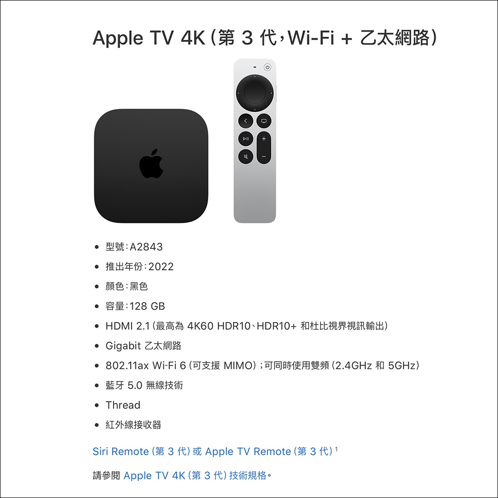 做為最新一波蘋果硬體產品中,算是相當意外在價位與規格方面都十分有誠意的新品 Apple TV 4K(第 3 代)。其不僅直接跳級 A15 SoC,讓大家更為期待這台意外更新的電視盒可以達到多強大的電視遊戲表現 - 越來越像是在買電玩主機了 XD。更會因為乙太網路埠與 Thread 技術協定支援以及價差不大的狀況下,選擇容量翻倍來到 128GB 的高階版本。