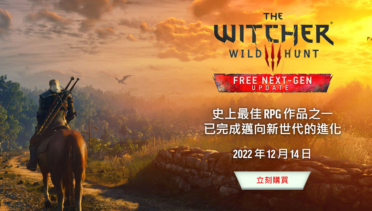 而玩家凡擁有《巫師 3:狂獵》任一版本遊戲,即能免費獲得次世代版本更新,包含PlayStation 5, Xbox Series X|S 和 PC版等。