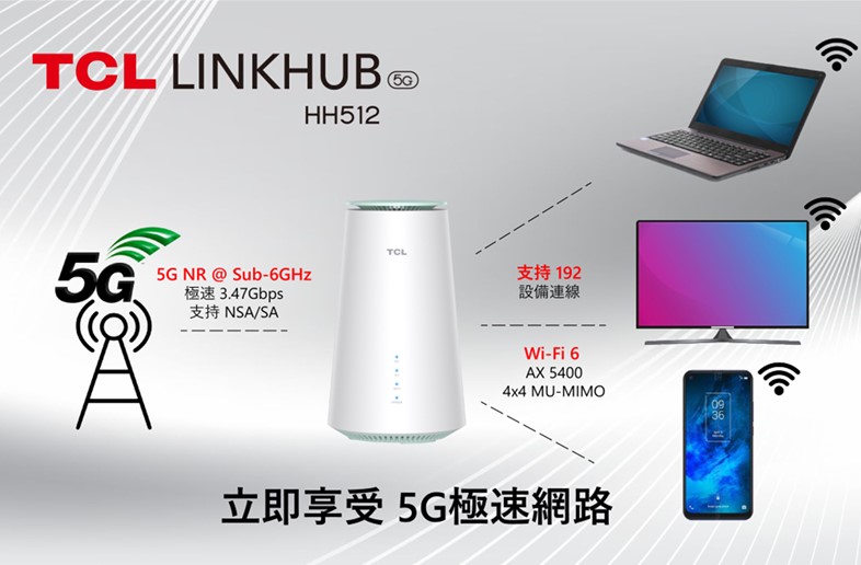 TCL LINKHUB HH512 5G NR 無線分享路由器由海悅電訊代理享三年保固服務,具備以下特色: