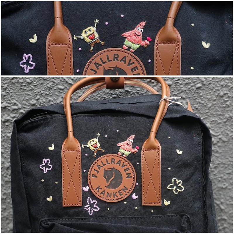 狐狸森林/Kuanai Hui這位設計師,提供客製化的服務,在你的包包縫製上你喜歡的圖案,包含可愛的海綿寶寶。訂製時間雖然較長,但設計師一針一線的縫製,為整個包包增添了獨特感,不需要擔心與別人撞包,也不用擔心買不到。