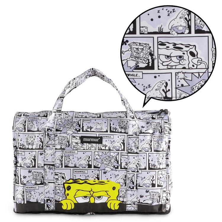 murmur的旅行收納袋有許多圖樣,當然也少不了可愛的海綿寶寶。這款旅行收納袋屬於多功能款,外層為防潑水材質,而內層則有防水塗層,材質不會過於硬挺,不使用時可以收納成一個小袋子。而打開使用時,不但可以套入行李箱拉桿,還有減壓肩片,降低背在身上的負擔。
