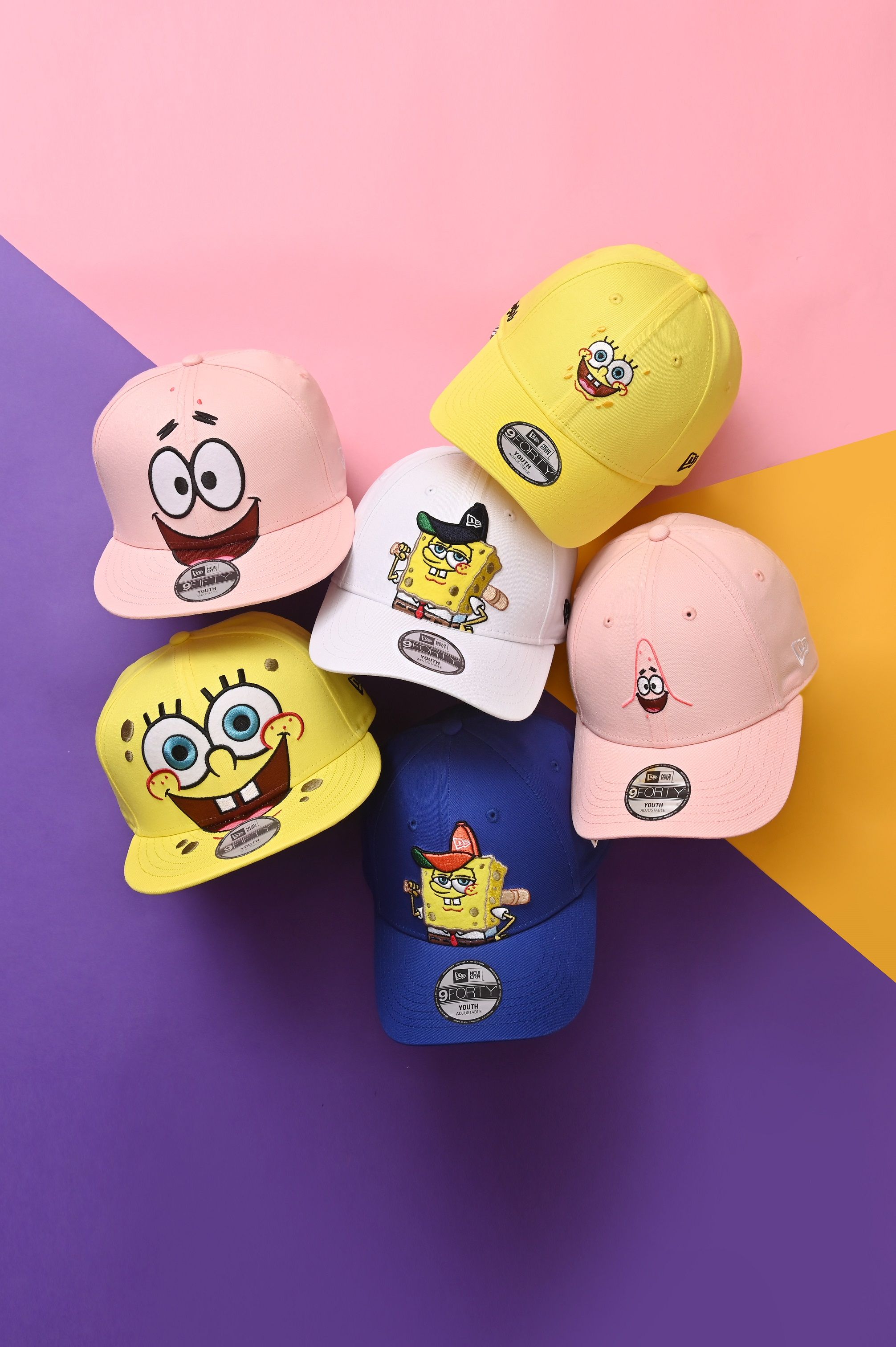 國際運動潮流品牌New Era也有與海綿寶寶合作,出了幾款海綿寶寶相關的帽子。尺寸單一,適合各類頭型,甚至還有孩童款,可以跟家中的小寶貝一起配戴親子潮流帽。帽子為近幾年日韓潮流主線,一點都不用擔心退流行。
