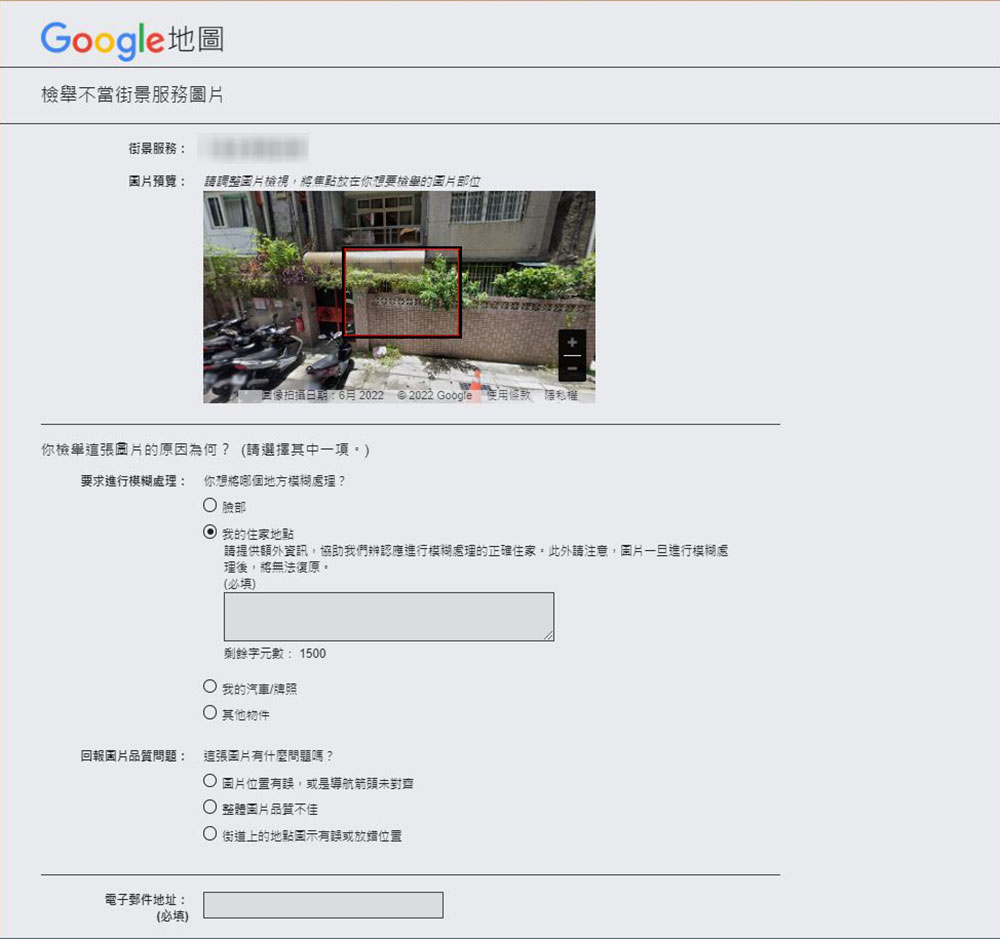如何向 Google 申請將地圖街景上的自家、車牌模糊處理?