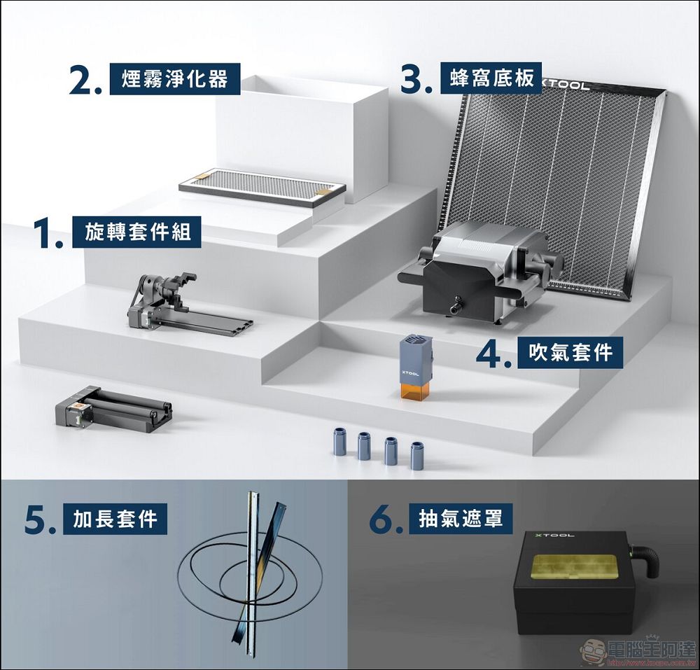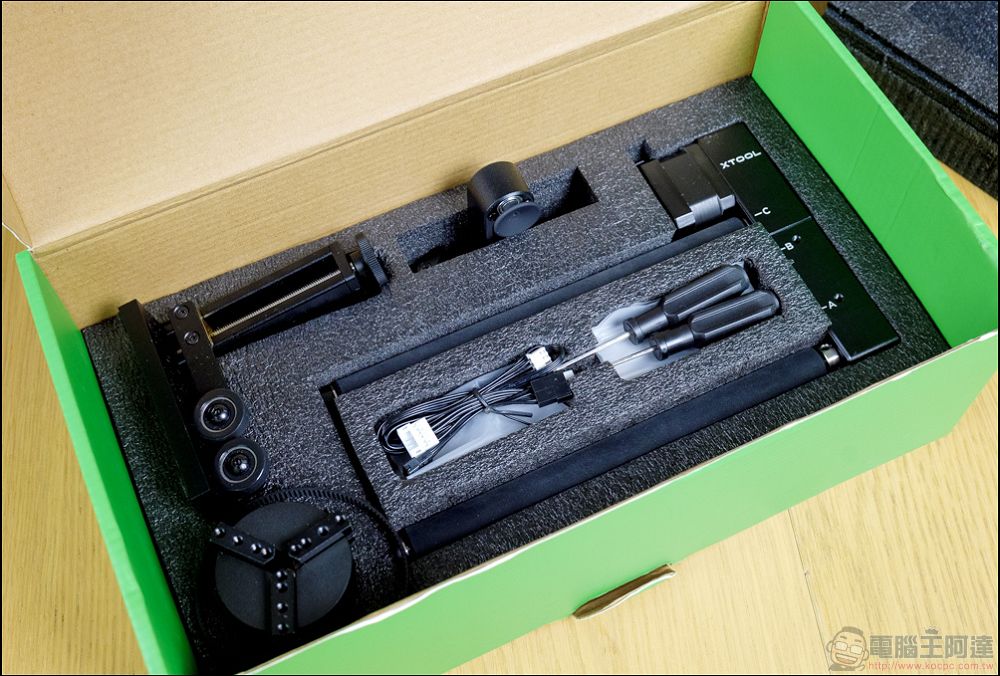 這次我們收到的是包含了旋轉套件的 xTool D1 Pro 組合: