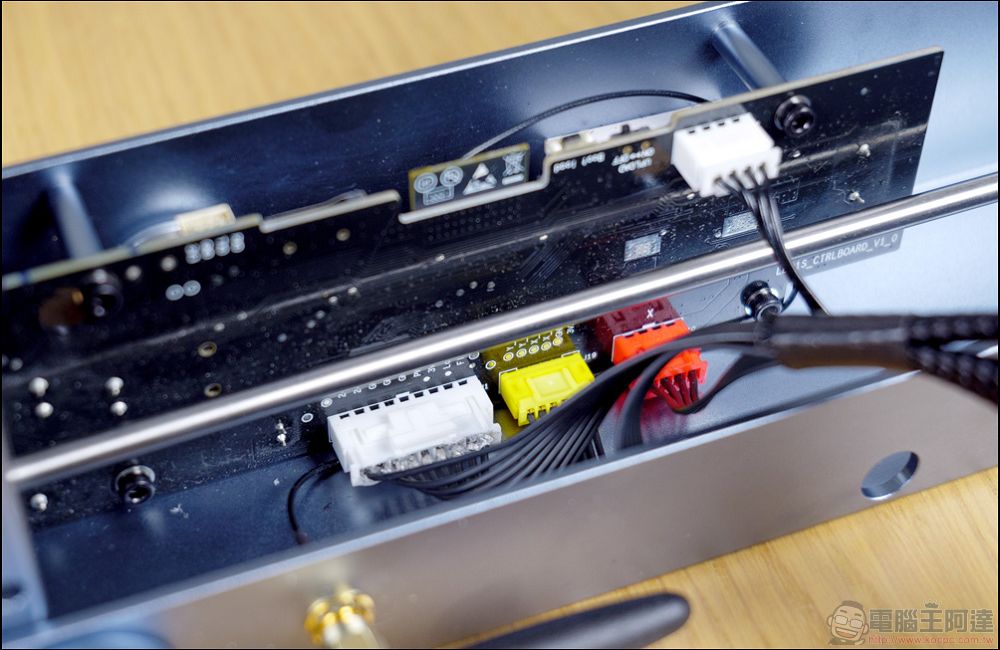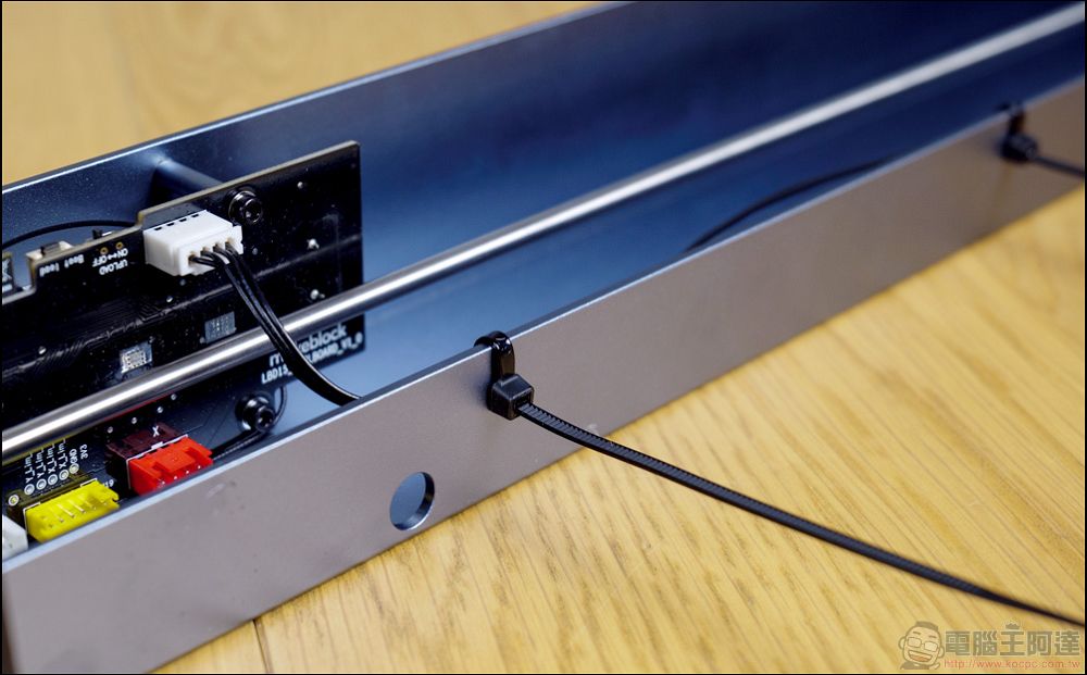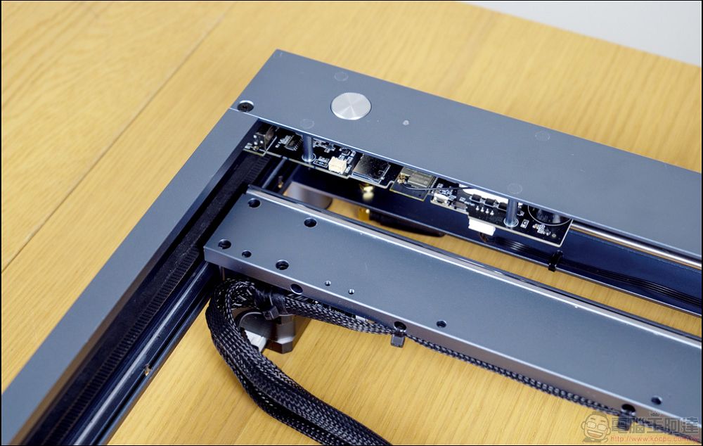 四個邊條只有電源孔這邊需要特別注意安裝,另外三個邊都是直接卡進去後,就可以將螺絲鎖上即可: