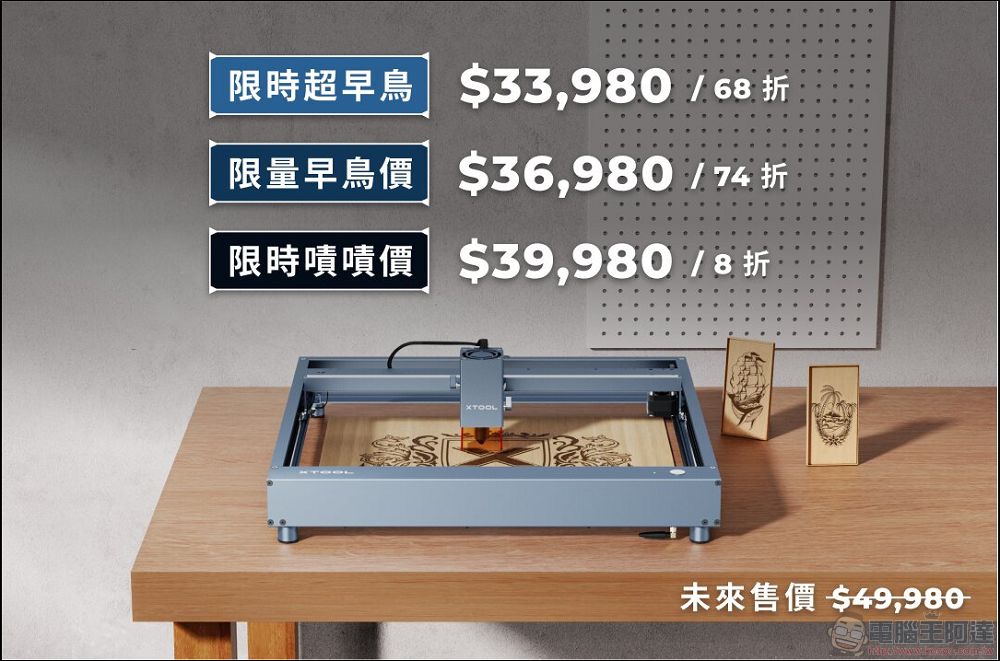 xTool D1 Pro(20W)現在同時也還在募資平台做活動,目前有早鳥價格的優惠提供給玩家,顏色則是金紅以及灰銀兩種顏色做選擇,活動只到12/8號,有興趣的朋友就趕緊動起來吧。