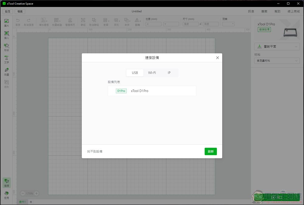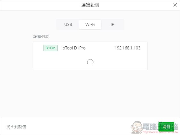 連接以後,只要將xTool D1 Pro連接上WiFi,那麼就可以直接透過無線的方式進行連接: